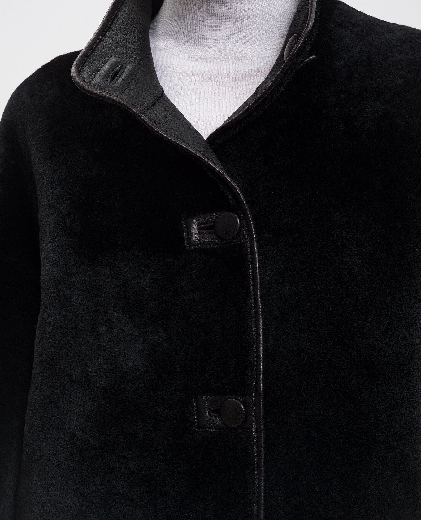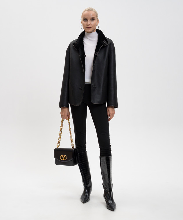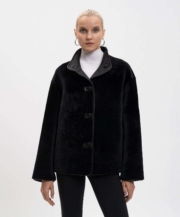 Чорна укорочена дублянка з окантуванням