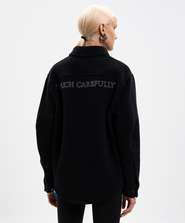 Чорна утеплена сорочка з кашеміру з логотипом