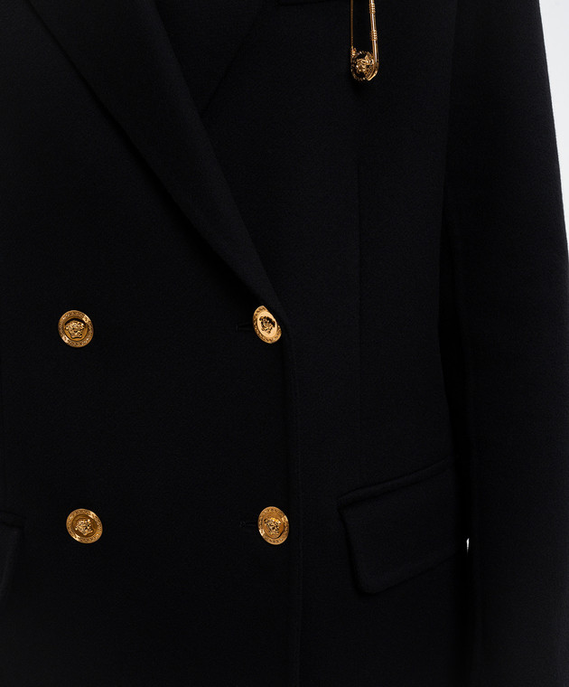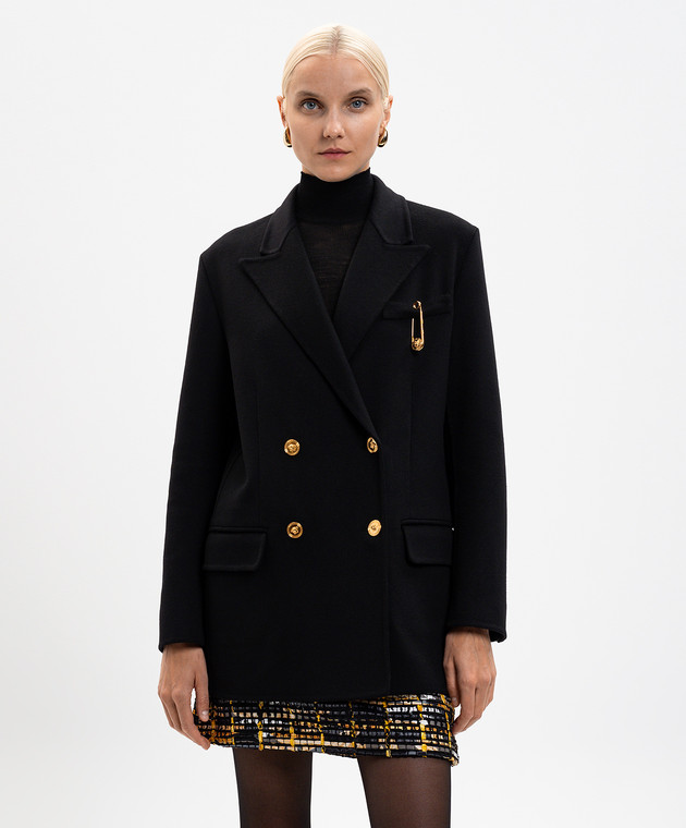Чорне двобортне пальто з вовни і кашеміру