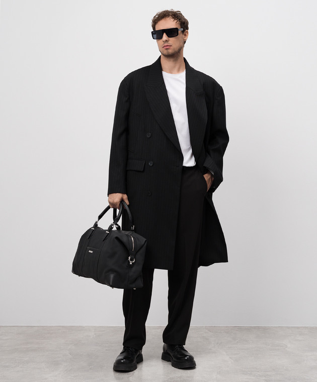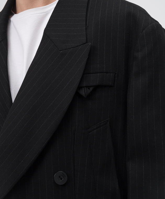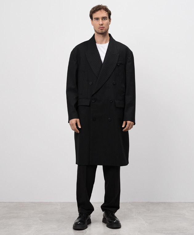 Чорне двобортне пальто Monsieur з вовною в смужку