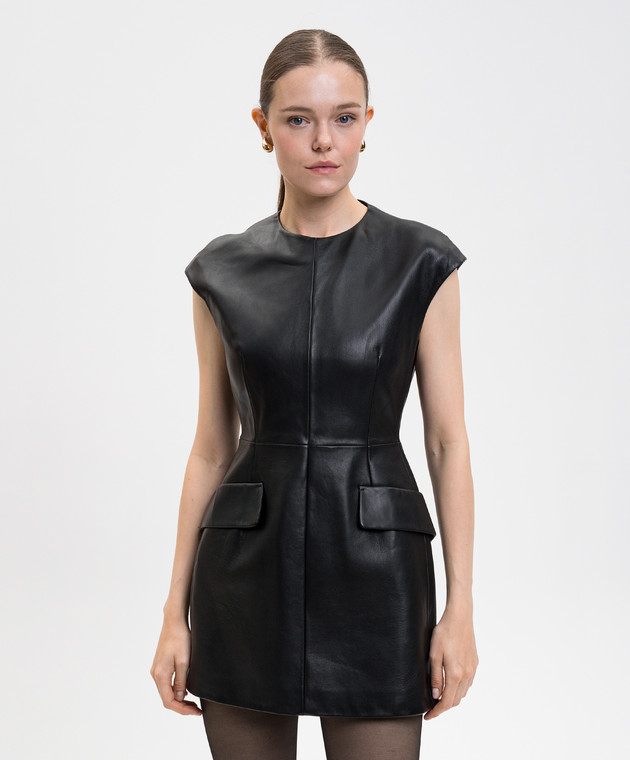 Чорна шкіряна сукня-футляр міні TEFRITE