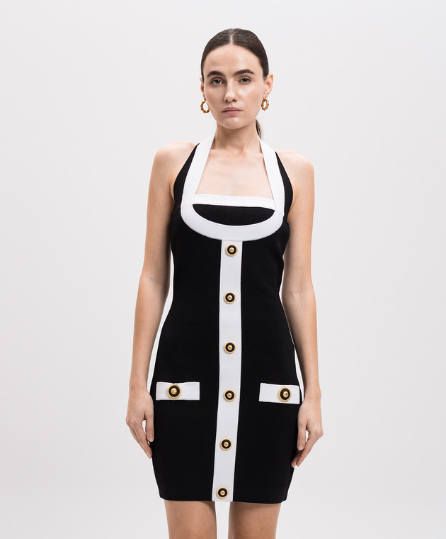 Чорна сукня-футляр міні з брендовими заклепками