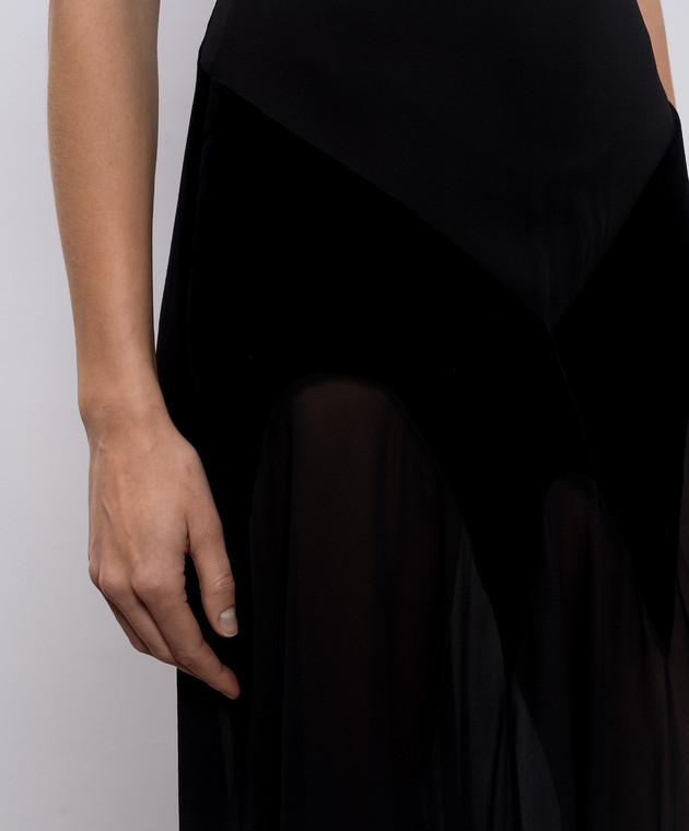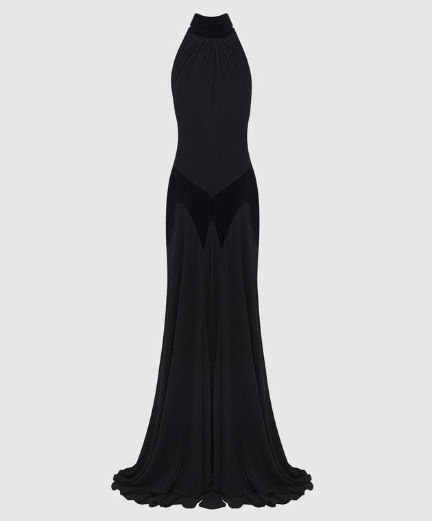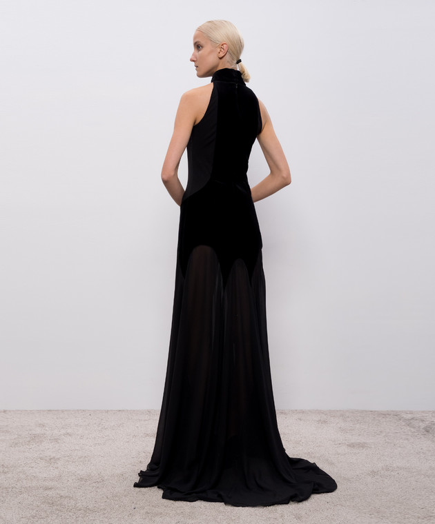 • Декор: комір-халтер, драпірування, оксамитові вставки, асиметричний низ