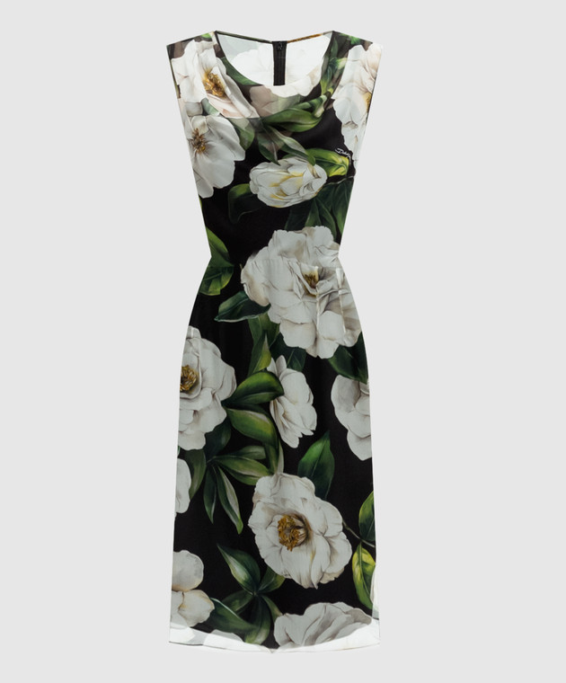 Чорна сукня із шовку в квітковий принт