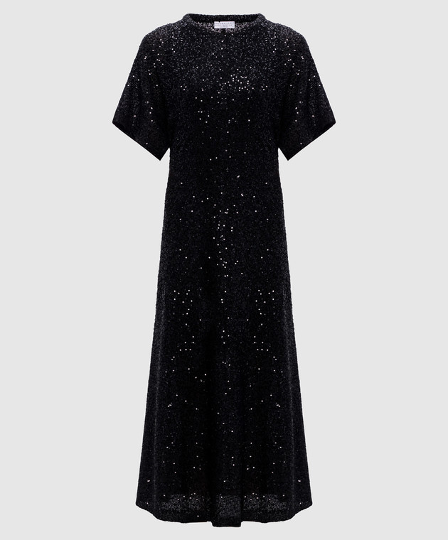Чорна сукня міді з льону, кашеміру та шовку в паєтки