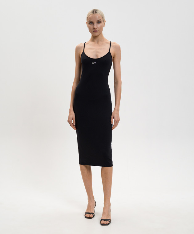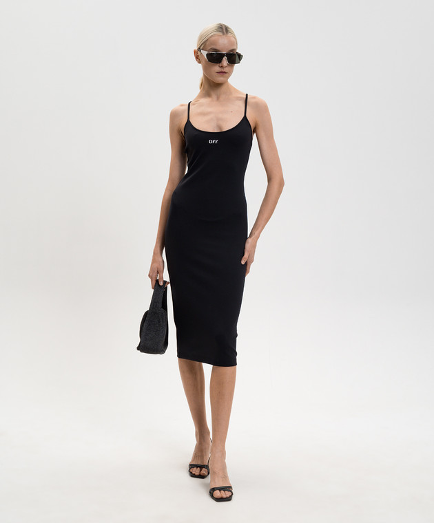 Чорна сукня міді з контрастним логотипом OFF