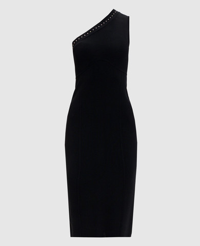 Чорна сукня міді з металевим логотипом Oval T