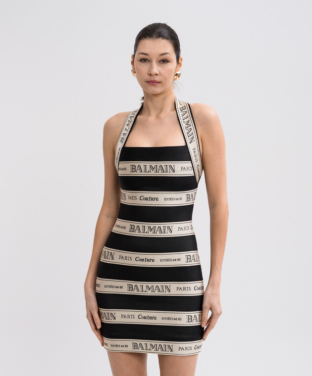 Чорна сукня-футляр міні у візерунок логотипа