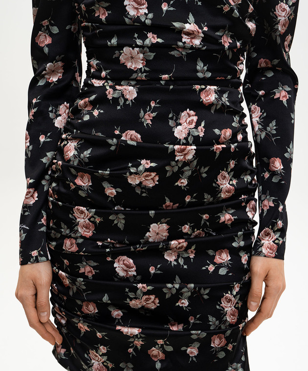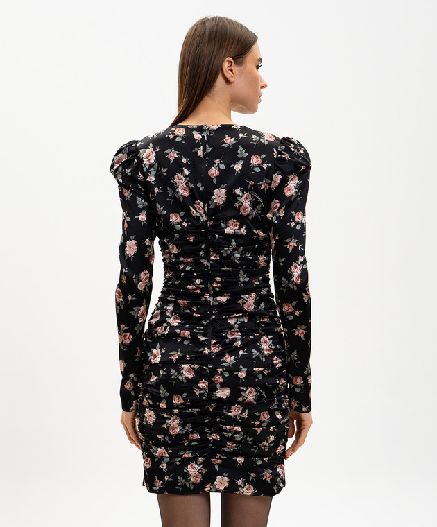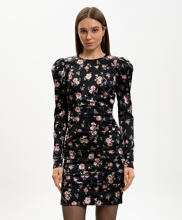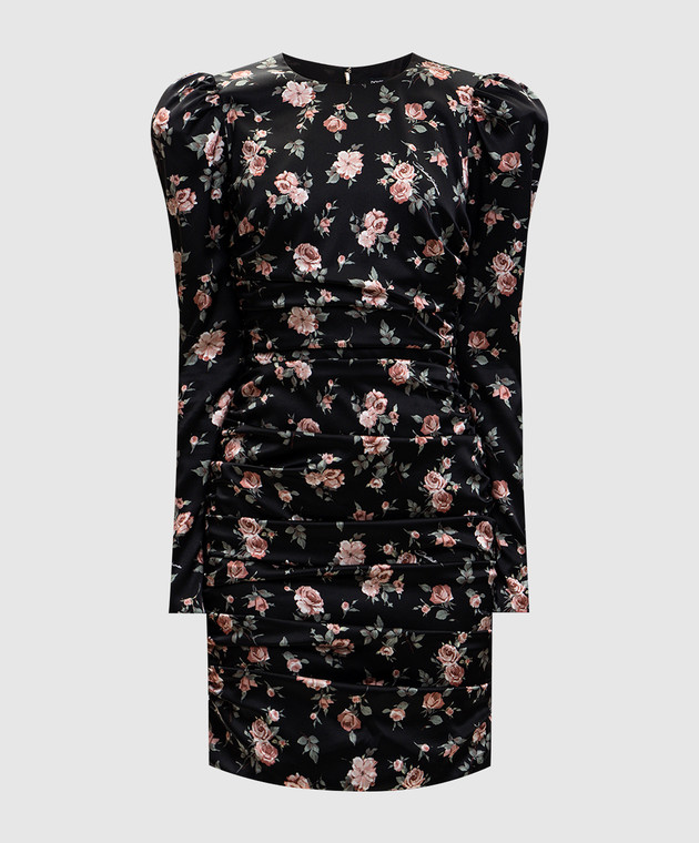 Чорна сукня міні із шовку з драпіруванням в принт