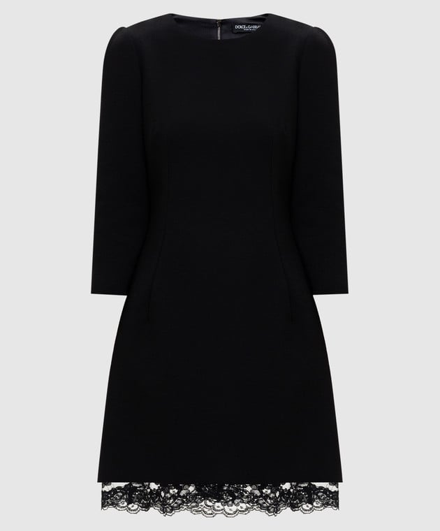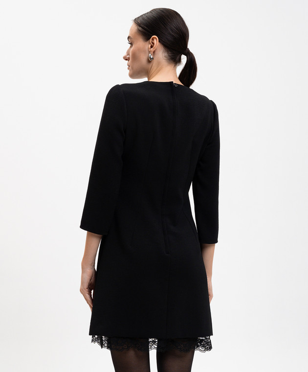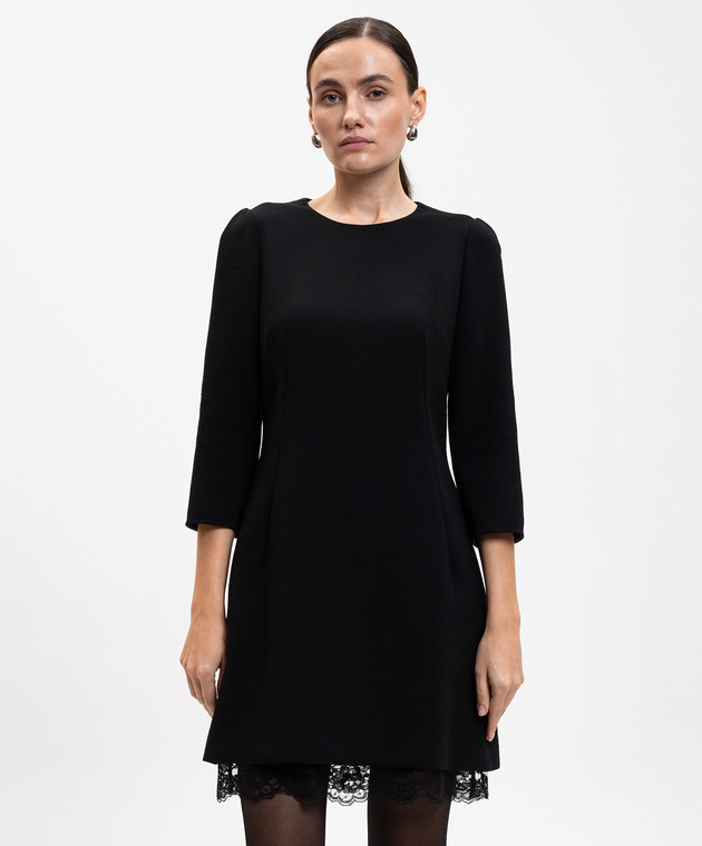 Чорна сукня міні з вовни з мереживом