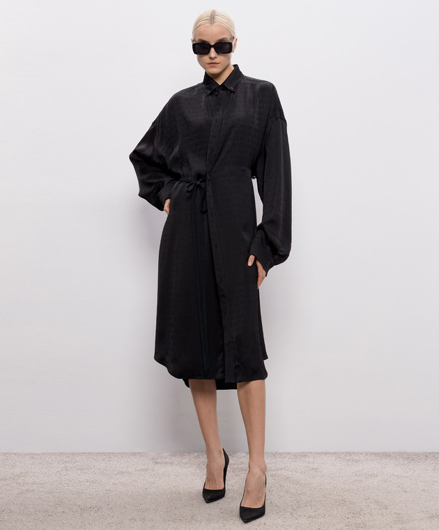 Чорна сукня-сорочка в тканий візерунок логотипа