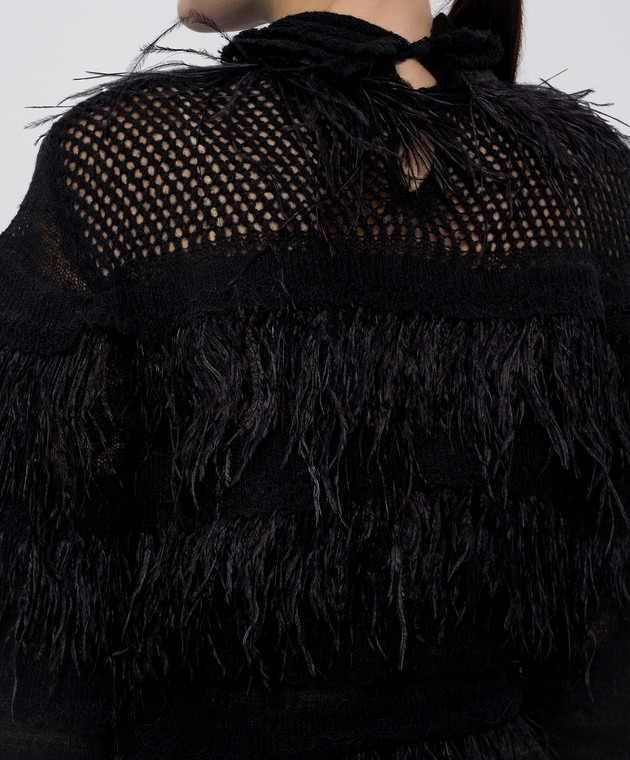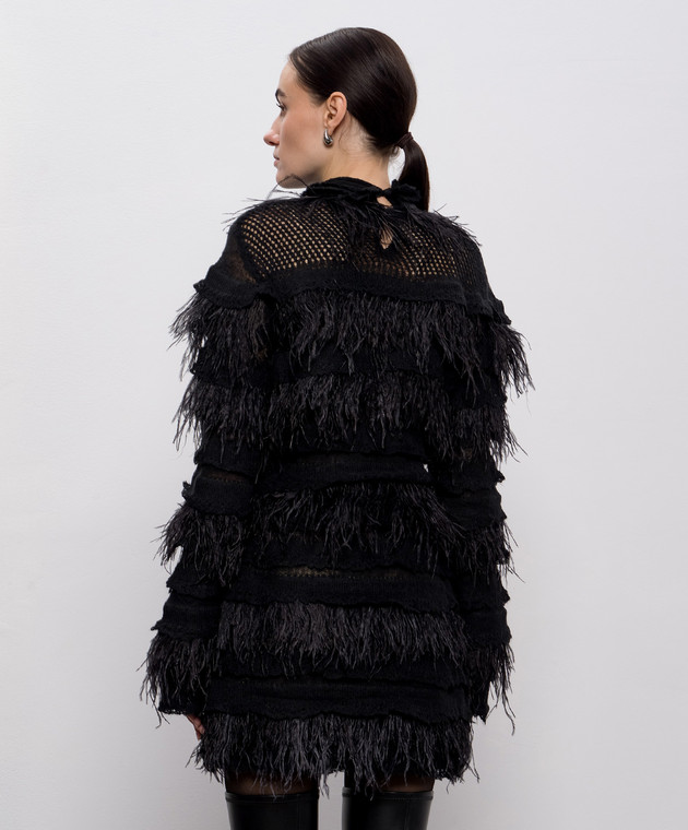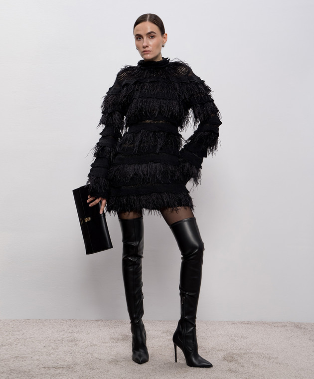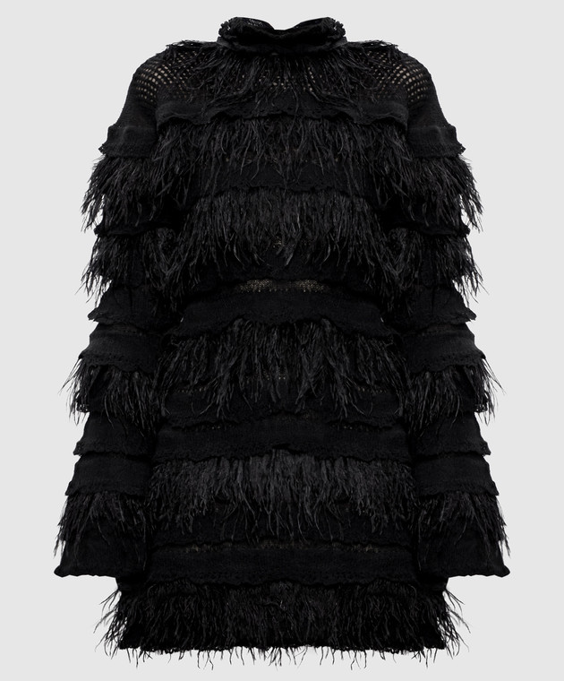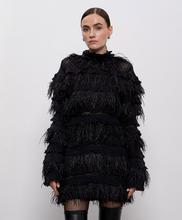 Чорна сукня з вовною альпаки та з пір'ям страуса