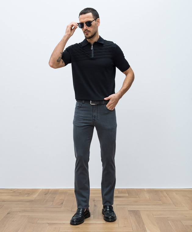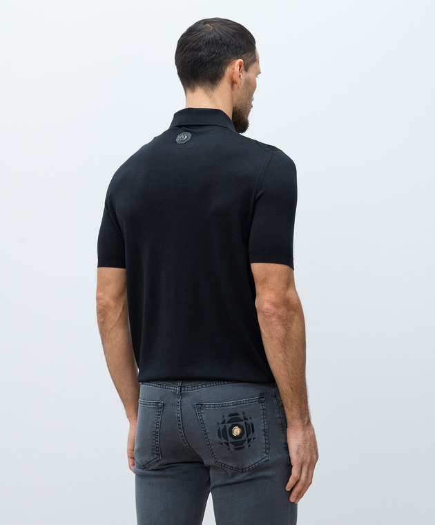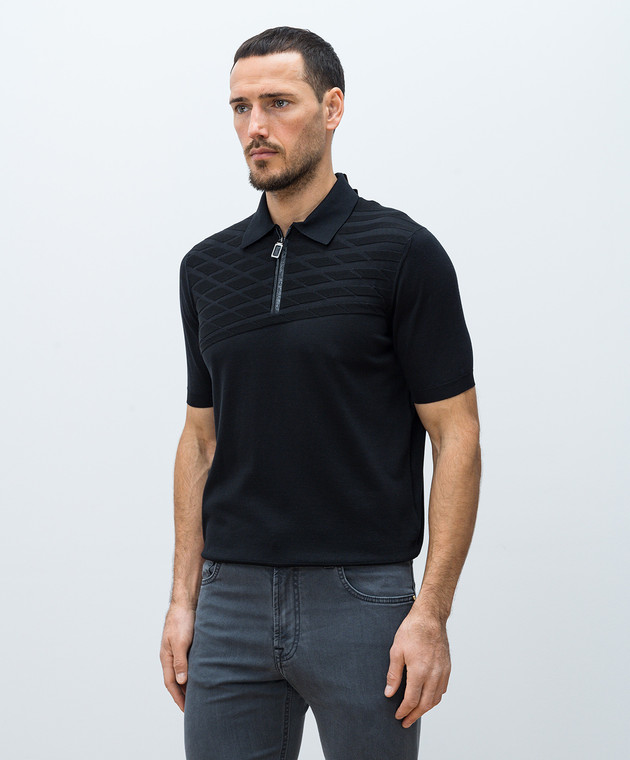 Чорне поло із шовку зі вставками зі шкіри крокодила