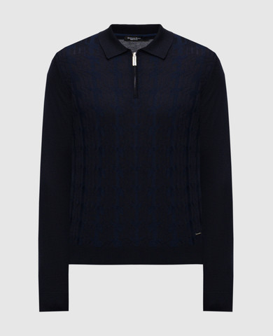 Чорне поло з вовни та шовку у геометричний візерунок