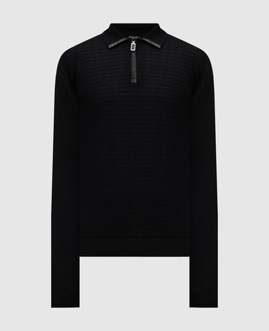 Чорне поло з вовни і шовку у візерунок