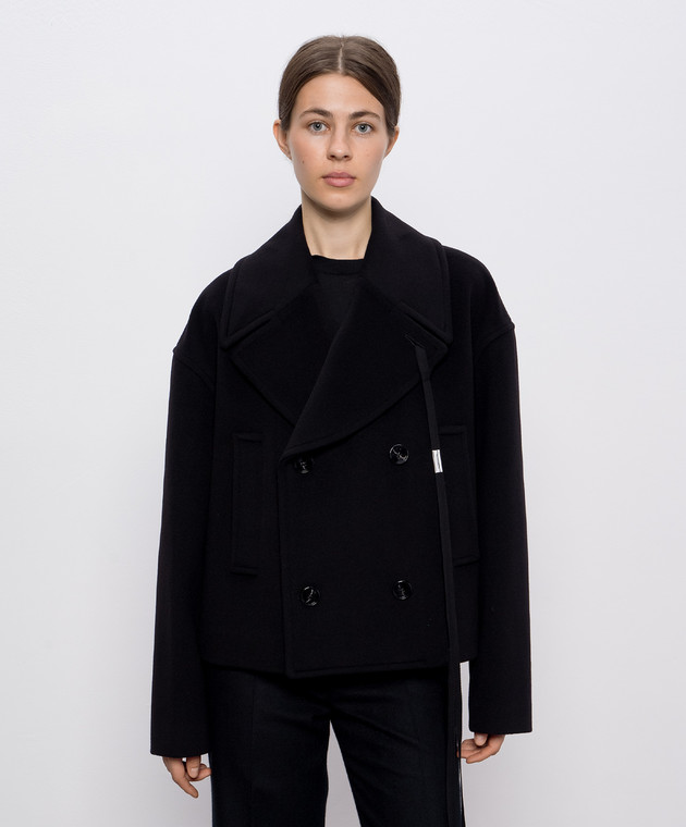 Чорне укорочене двобортне пальто Ulrica з вовни і кашеміру
