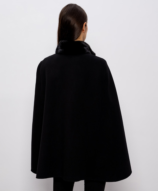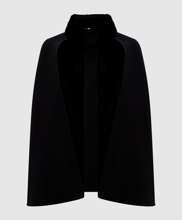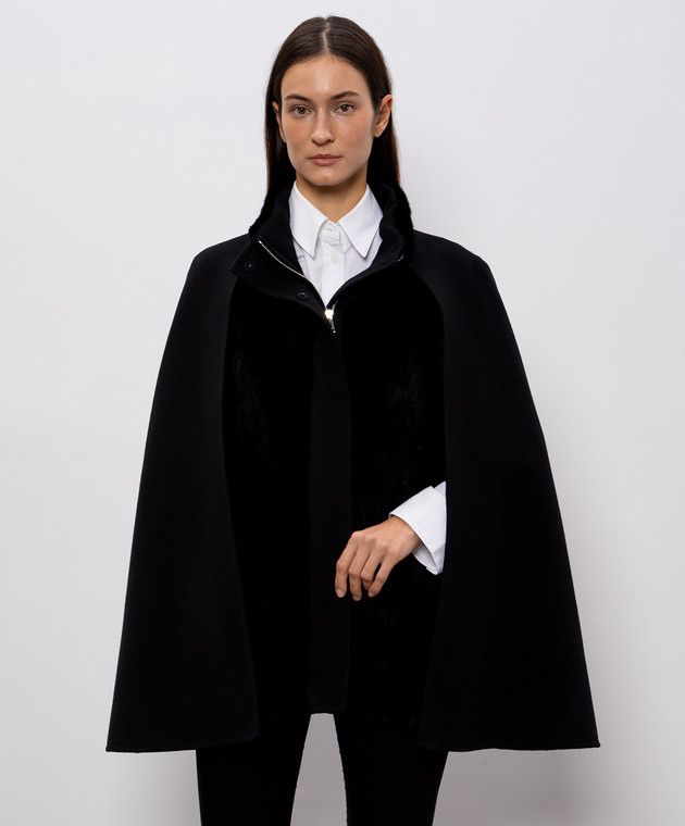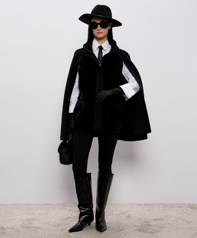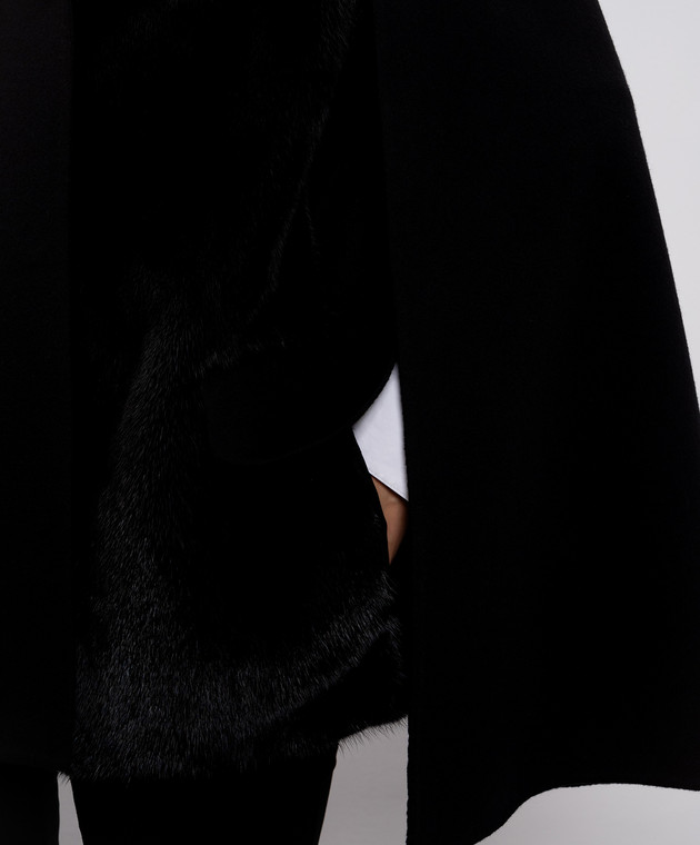 Чорне укорочене пальто з кашеміру та вовни з хутром