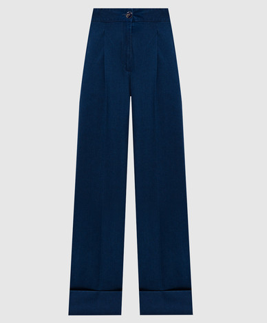Чорні штани із шовку з відворотами