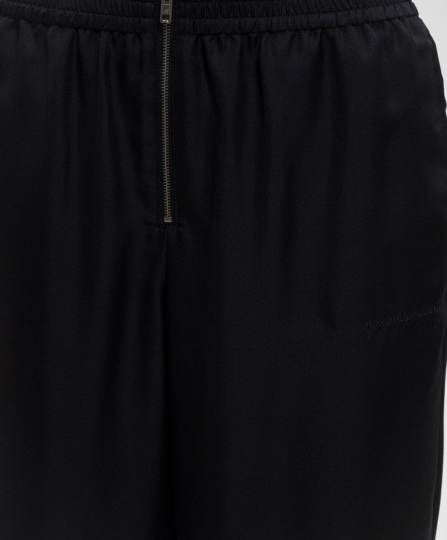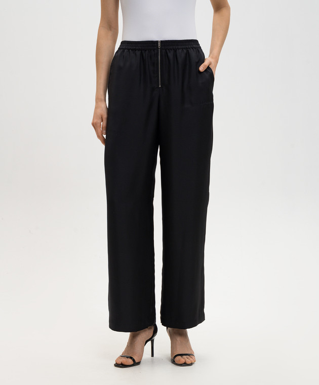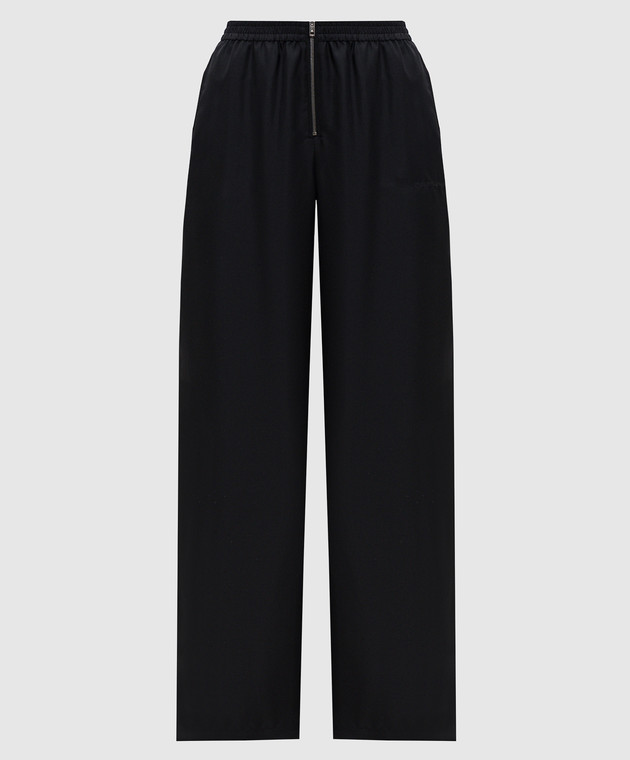Чорні штани із шовку з вишивкою логотипа