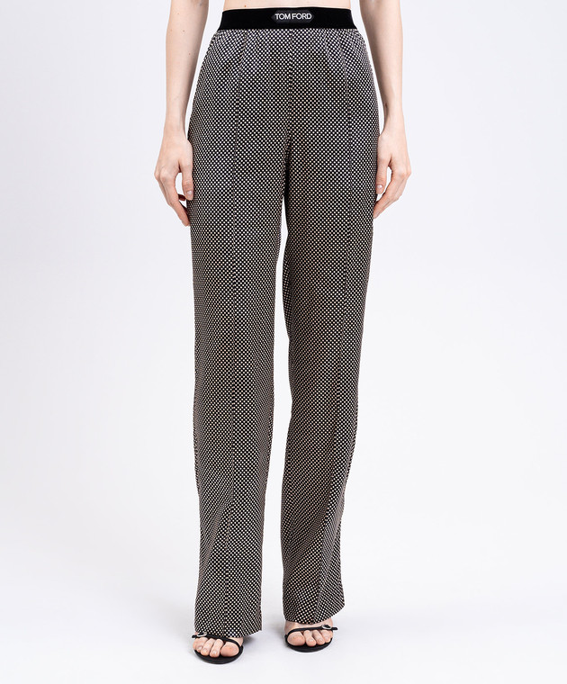 Чорні штани із шовку в горох