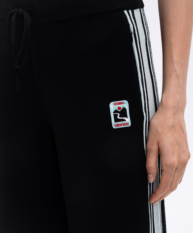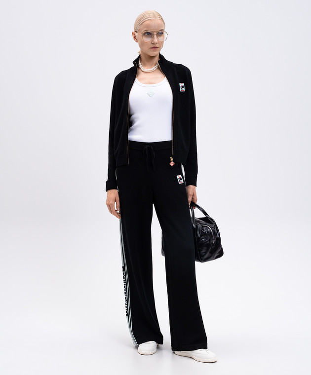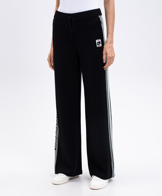 Чорні штани з вовни меріноса з нашивкою логотипа