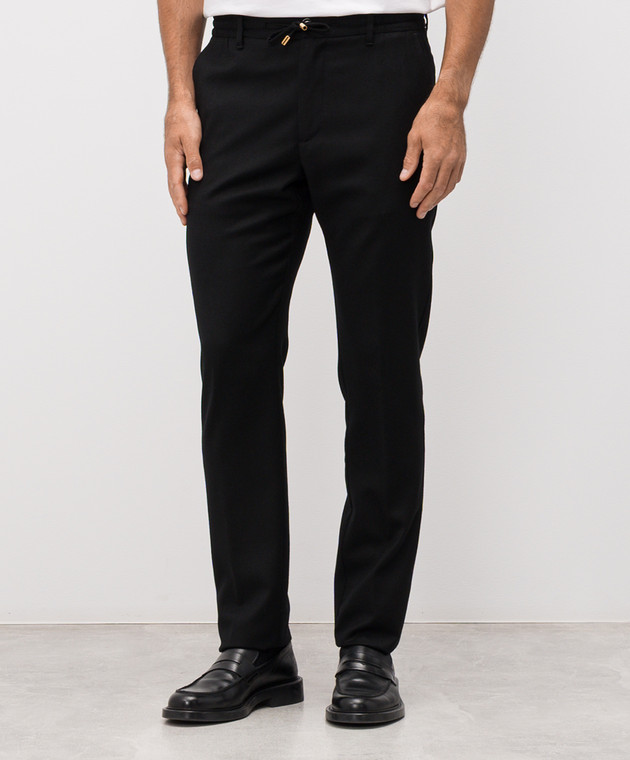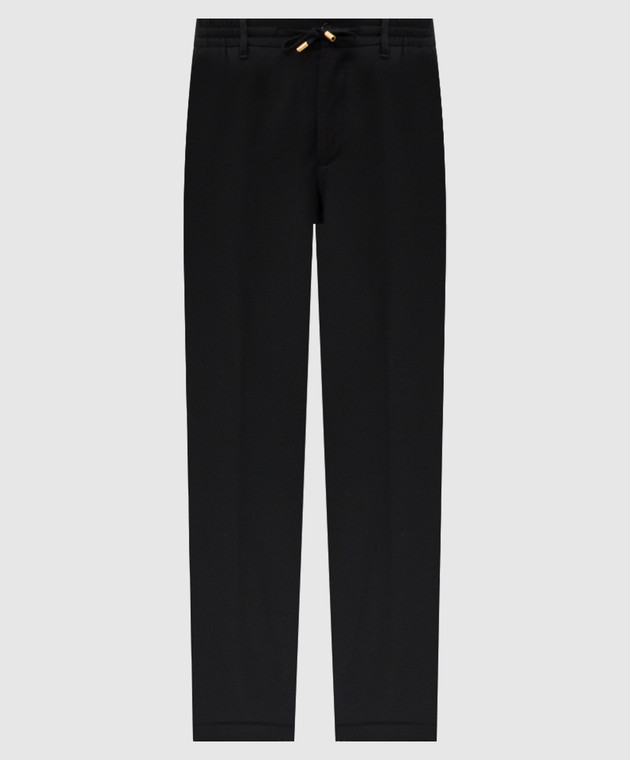 Чорні штани з вовни з брендовою нашивкою