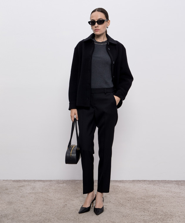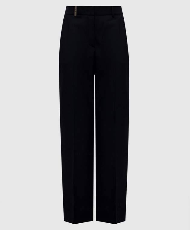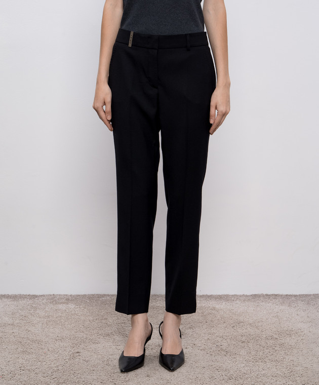 Чорні штани з вовни з брендовим патчем