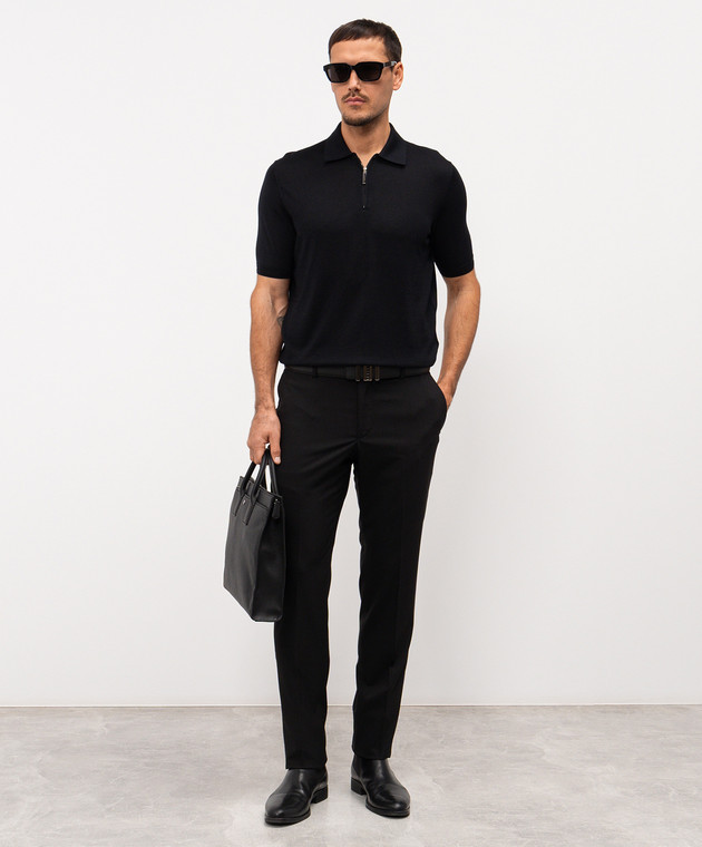 Чорні штани з вовни з логотипом