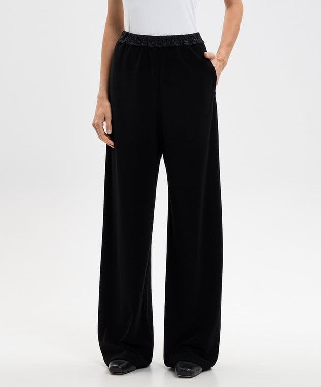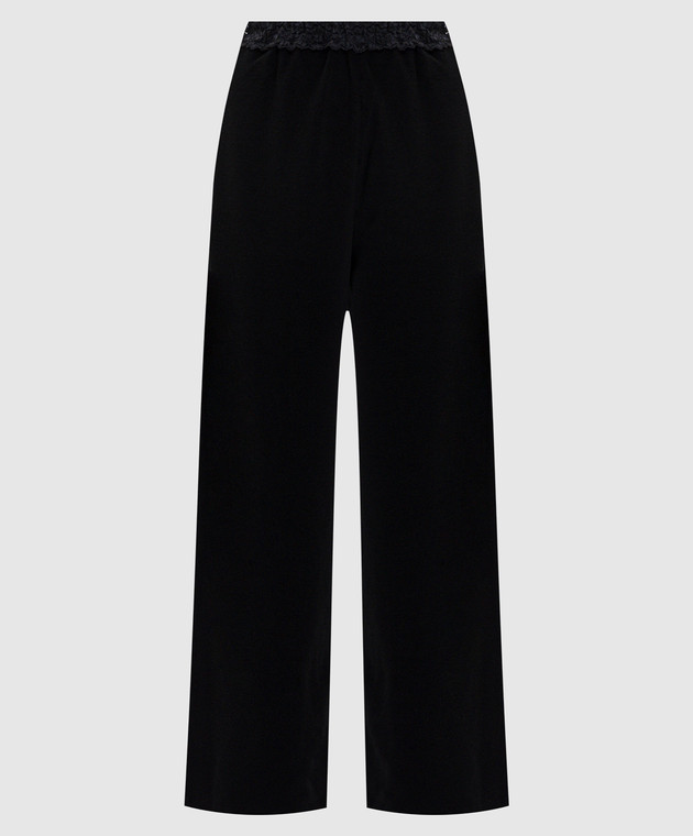 Чорні велюрові штани з мереживом