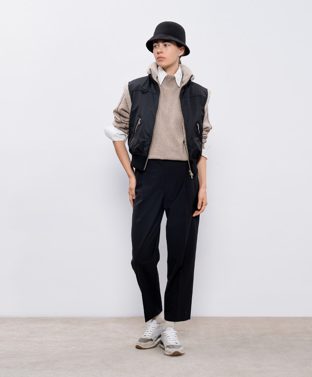 Чорні штани з вовною з ланцюжком моніль