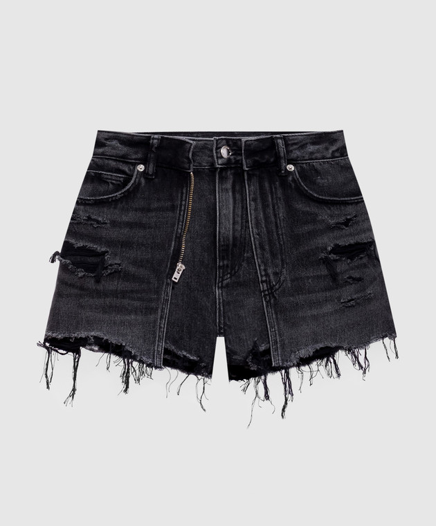 Чорні джинсові шорти подвійної конструкції з проріхами