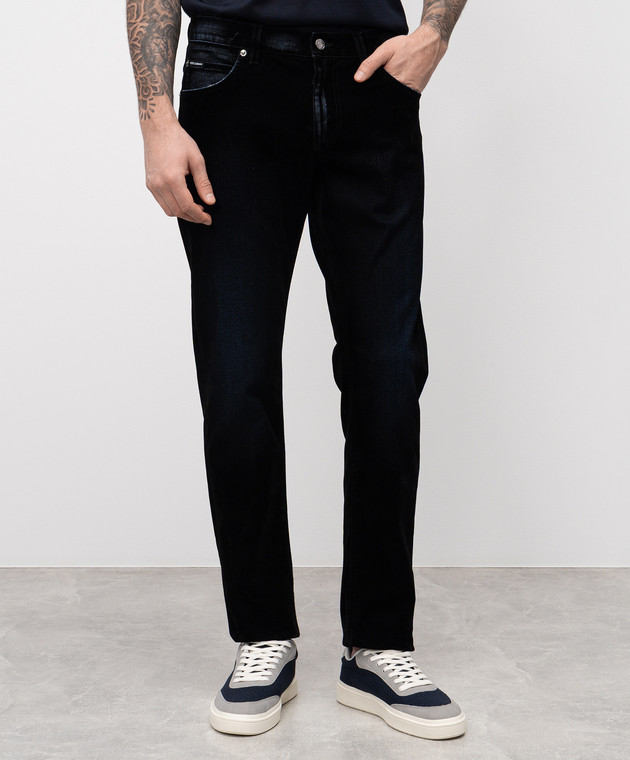 Чорні джинси з оксамитовим напиленням з логотипом