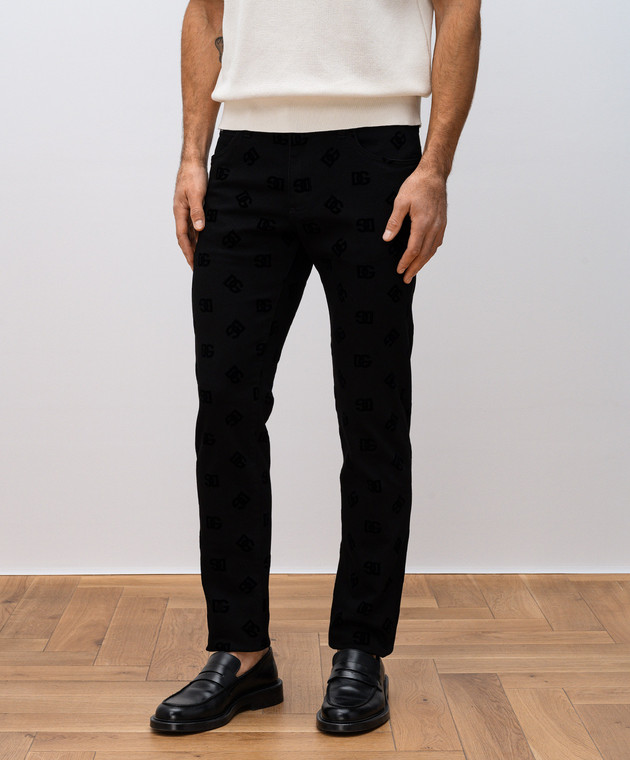 Чорні джинси слім у фактурний візерунок монограми логотипа DG