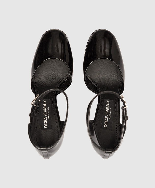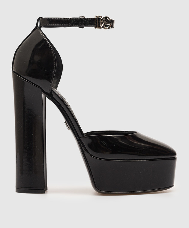 Чорні глянцеві шкіряні туфлі з металевим логотипом DG