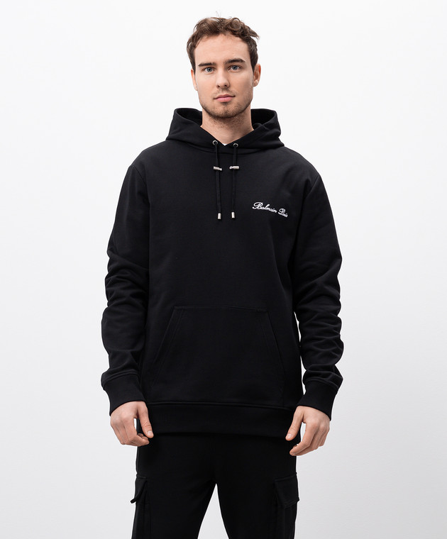 Чорне худі з вишивкою логотипа