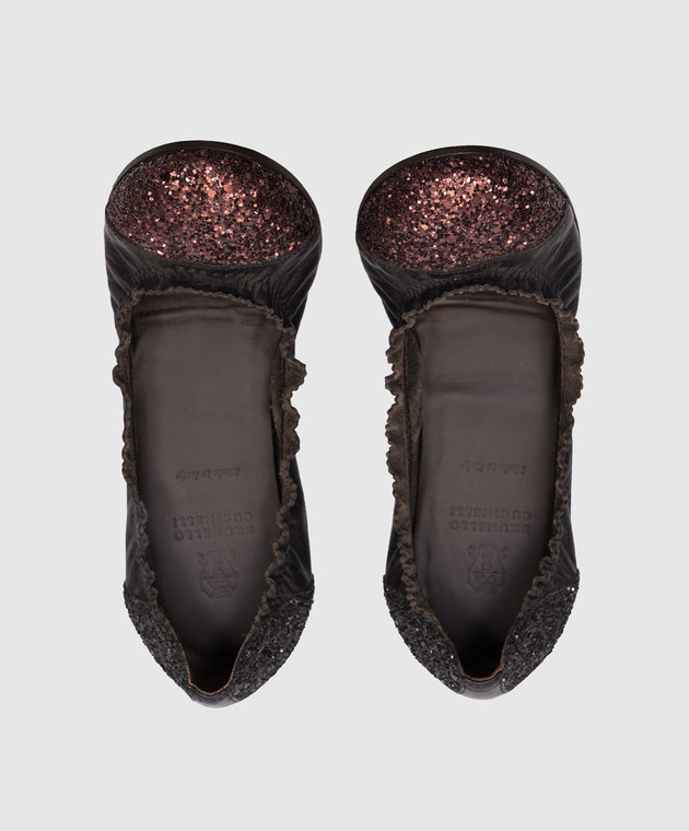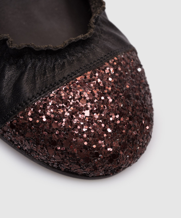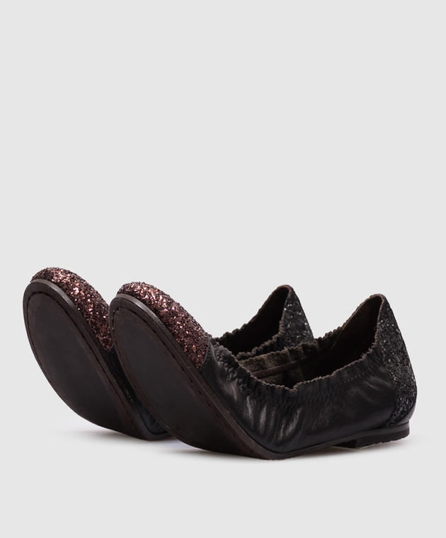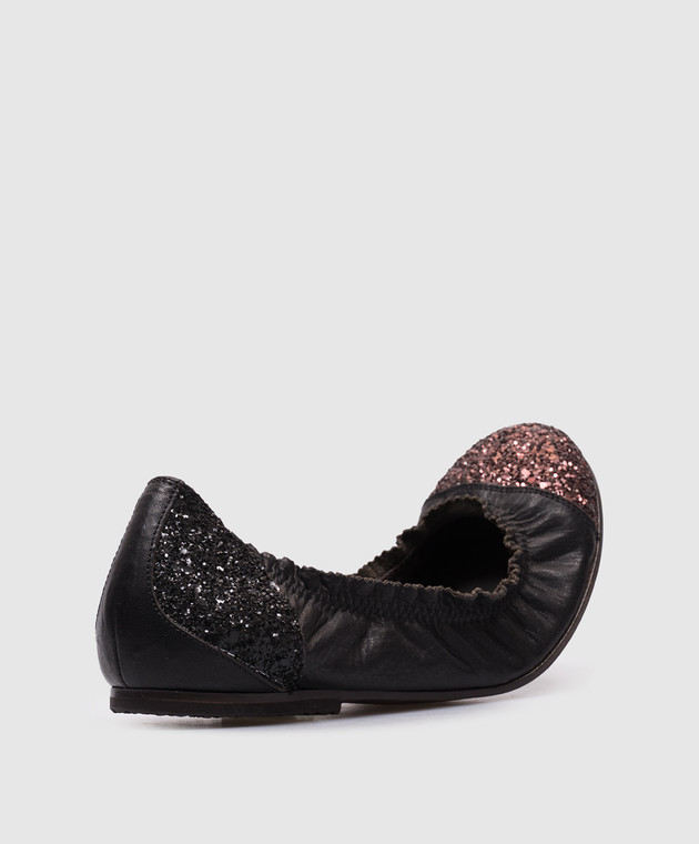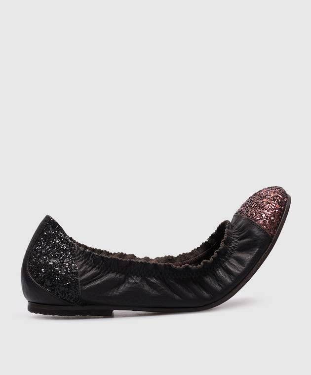 Чорні шкіряні балетки з глітером