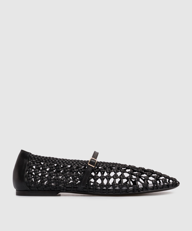 Чорні шкіряні балетки з плетінням