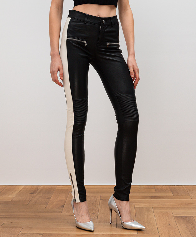 Чорні шкіряні штани з лампасами