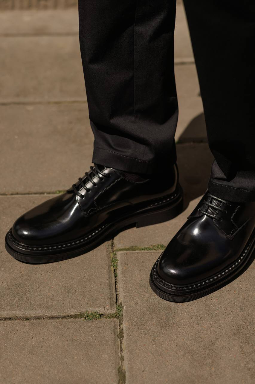 Чорні шкіряні глянцеві дербі