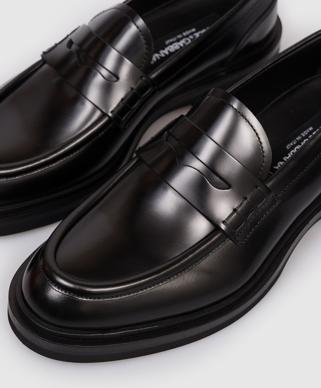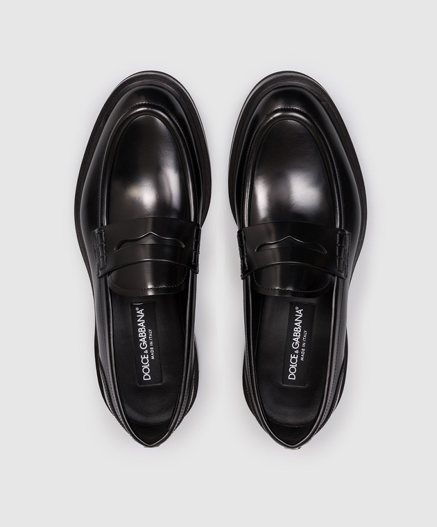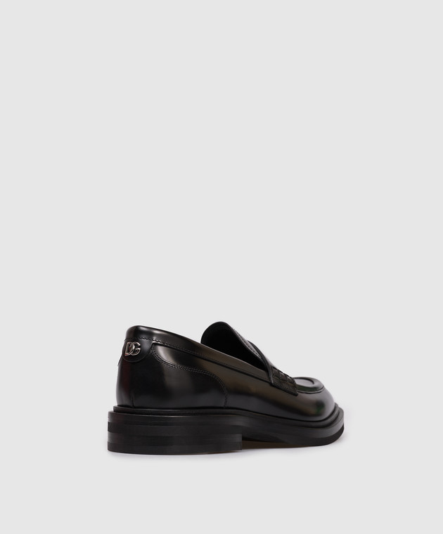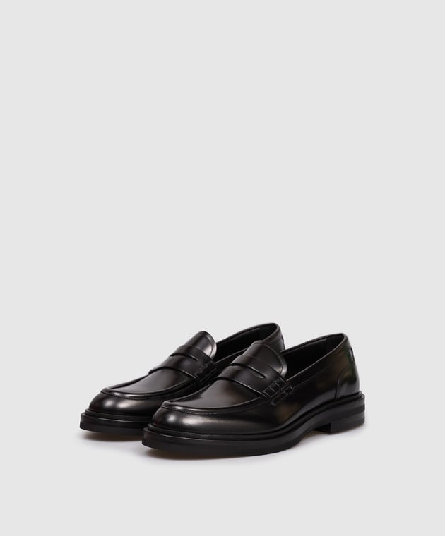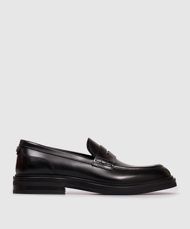 Чорні шкіряні глянцеві лофери з монограмою логотипа
