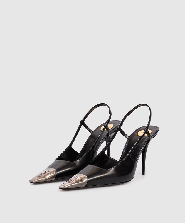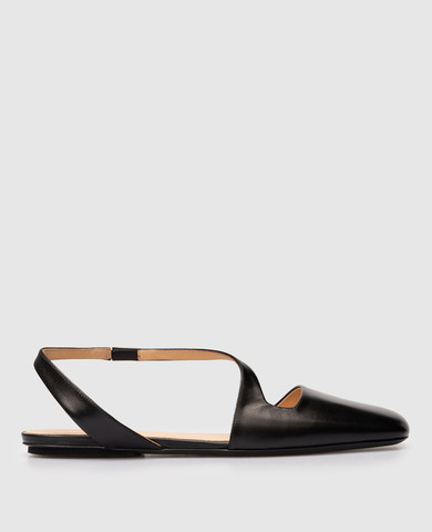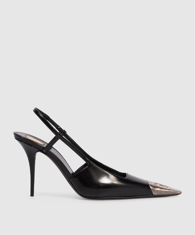 Чорні шкіряні глянцеві слінгбеки JEANNE