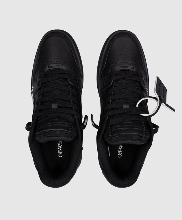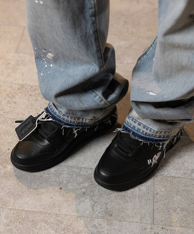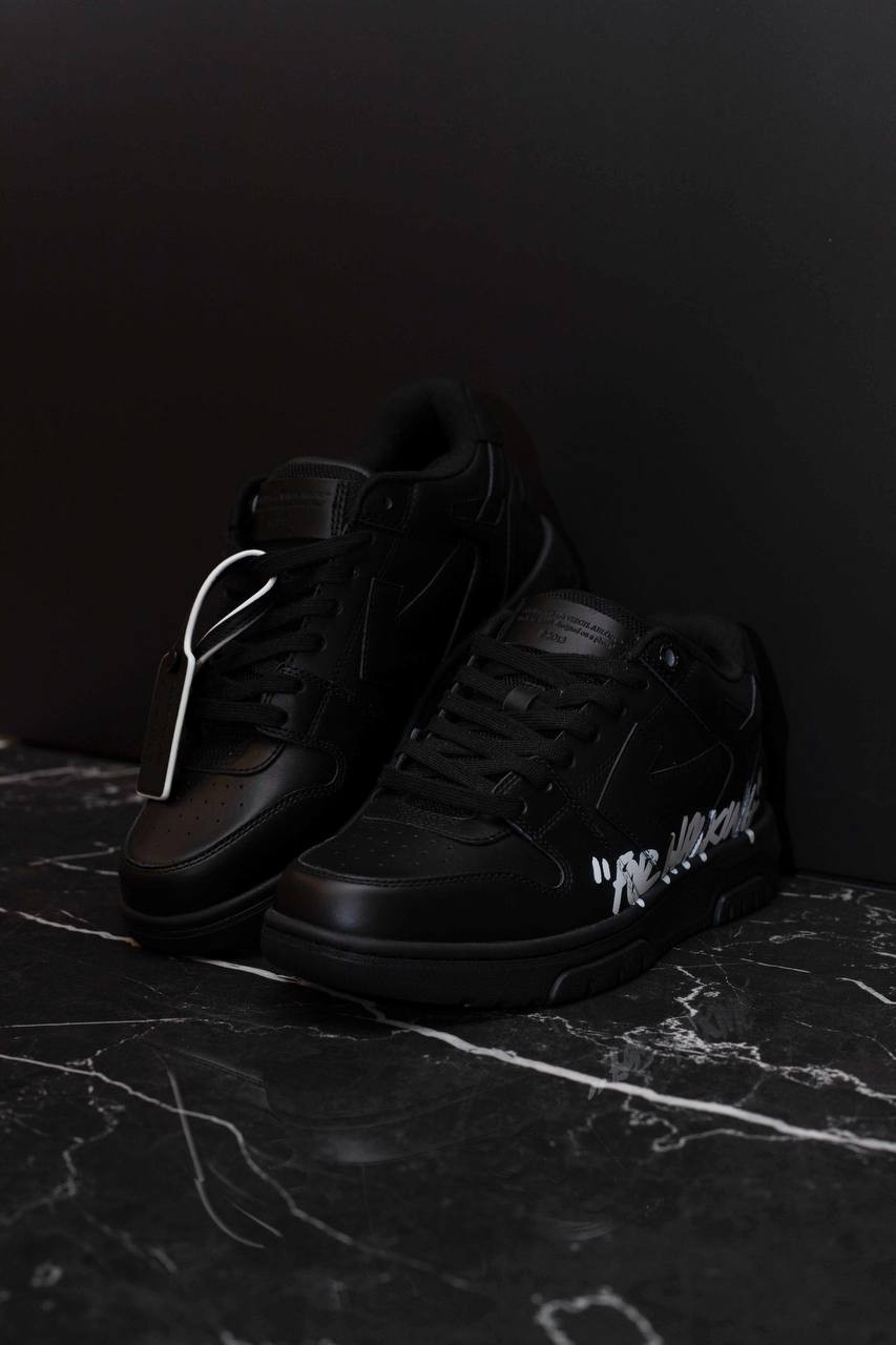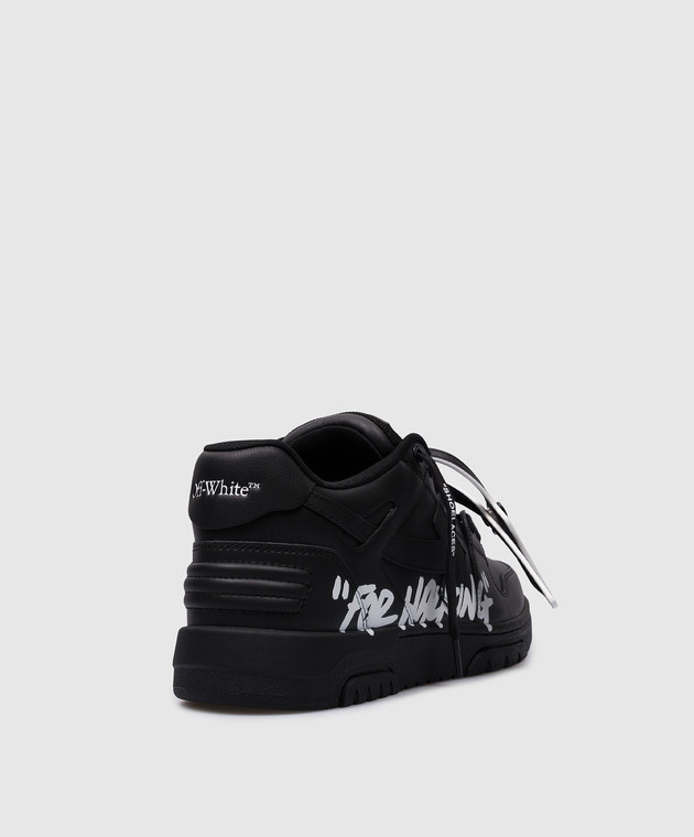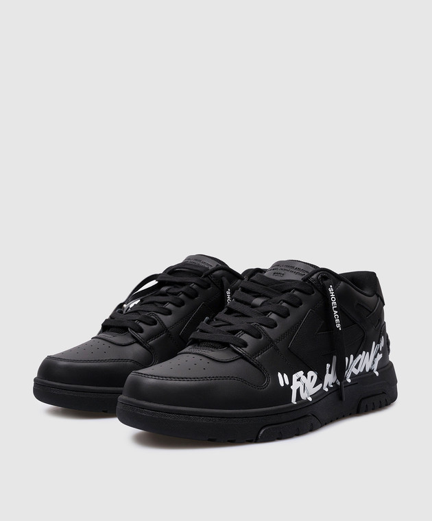 Чорні шкіряні кросівки OUT OF OFFICE з принтом FOR WALKING