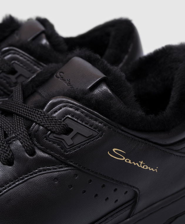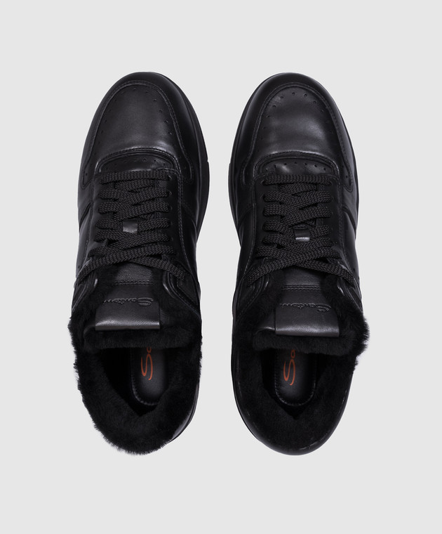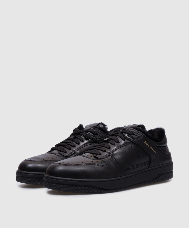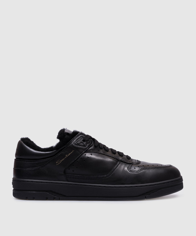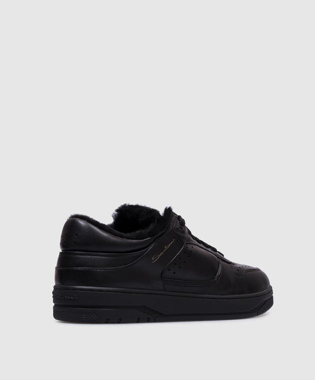 Чорні шкіряні кросівки Sneak Air на хутрі з логотипом