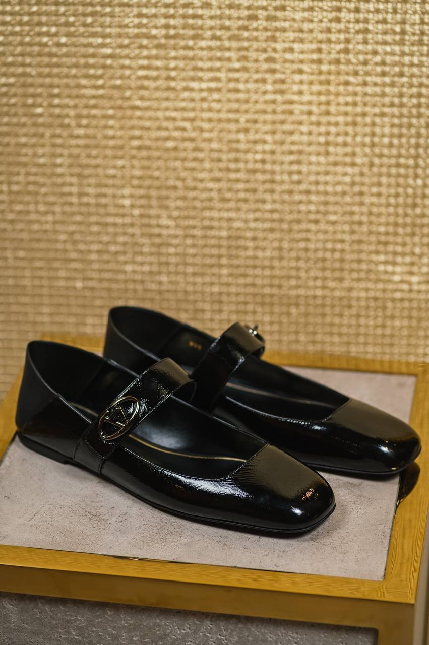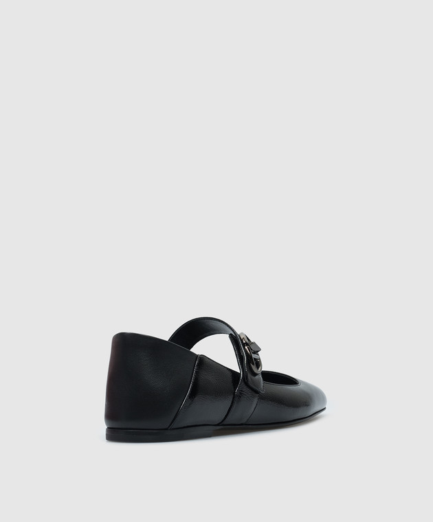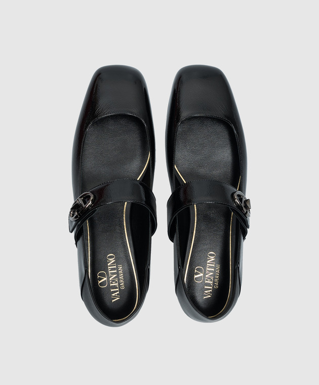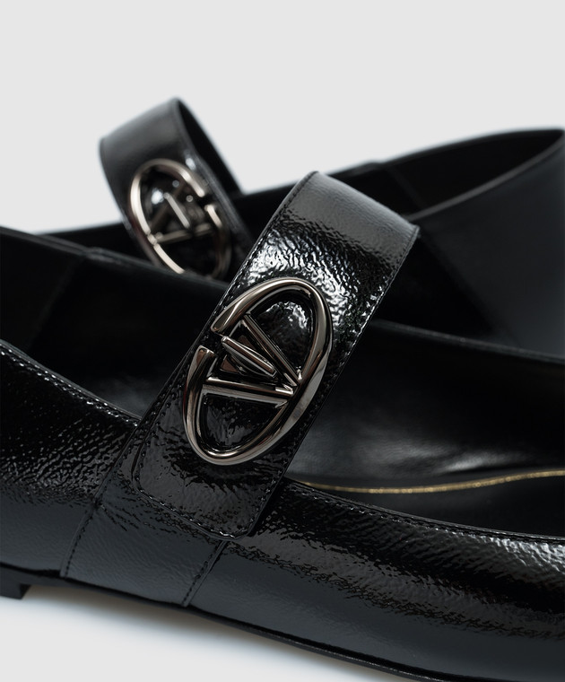 Чорні шкіряні лаковані балетки з логотипом VLogo Signature