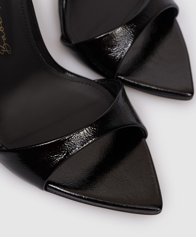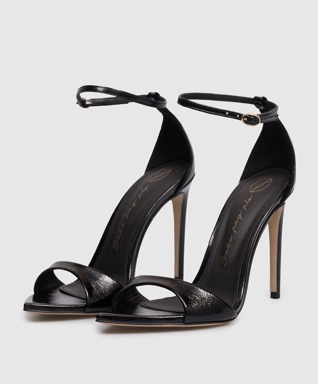 Чорні шкіряні лаковані босоніжки
