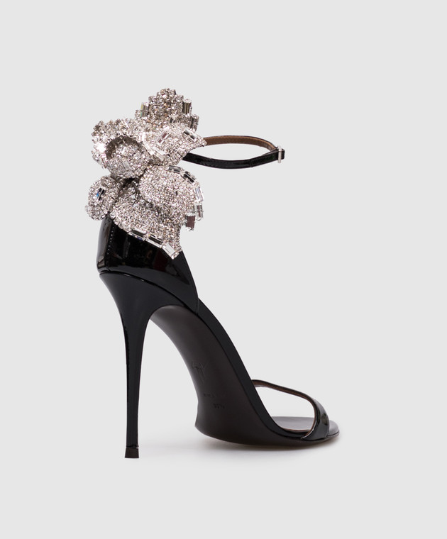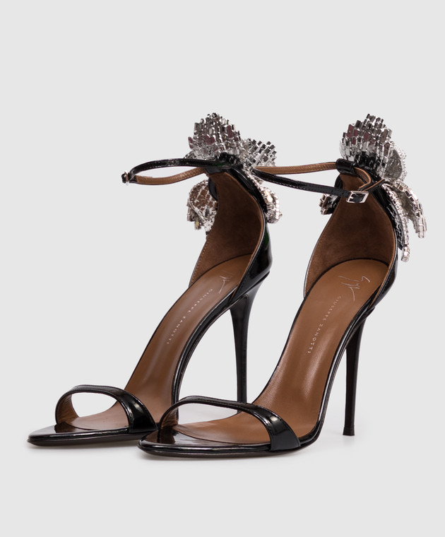 Чорні шкіряні лаковані босоніжки Clandestino з аплікацією