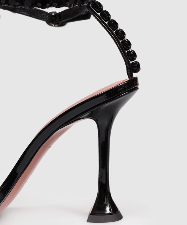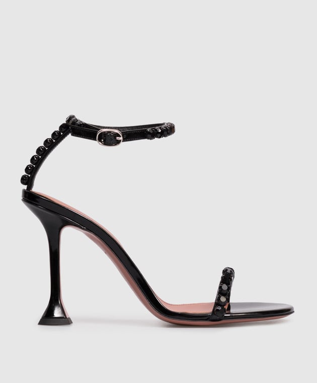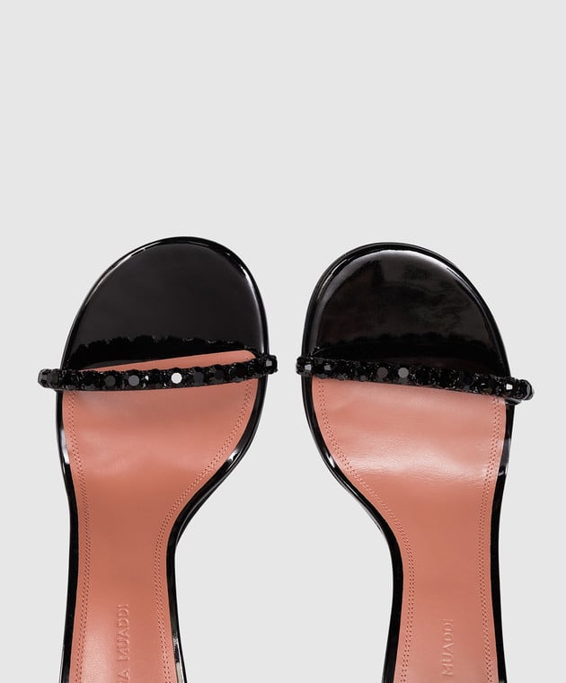 Чорні шкіряні лаковані босоніжки Gigi з кристалами