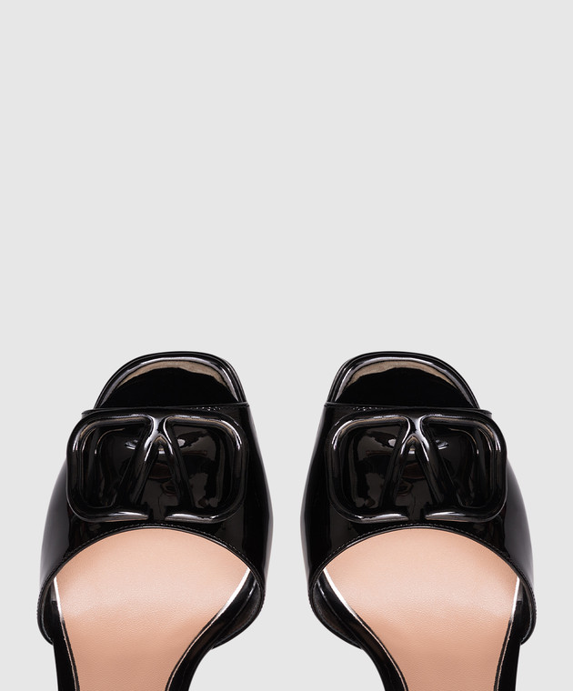 Чорні шкіряні лаковані босоніжки з емблемою VLogo Signature