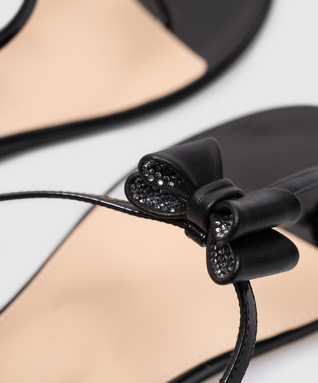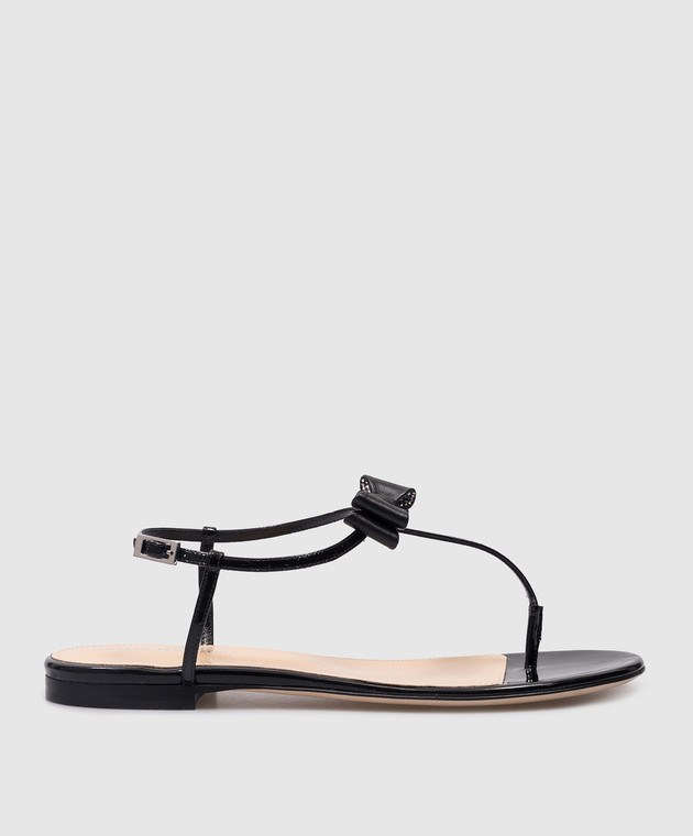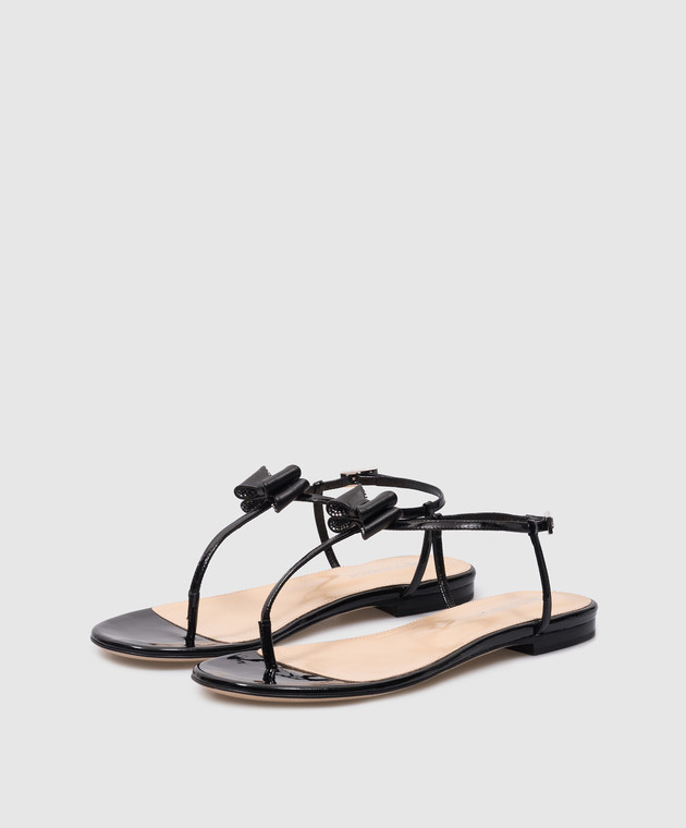 Чорні шкіряні лаковані сандалі Petite Cadeau з кристалами