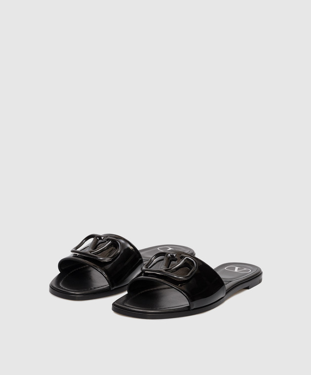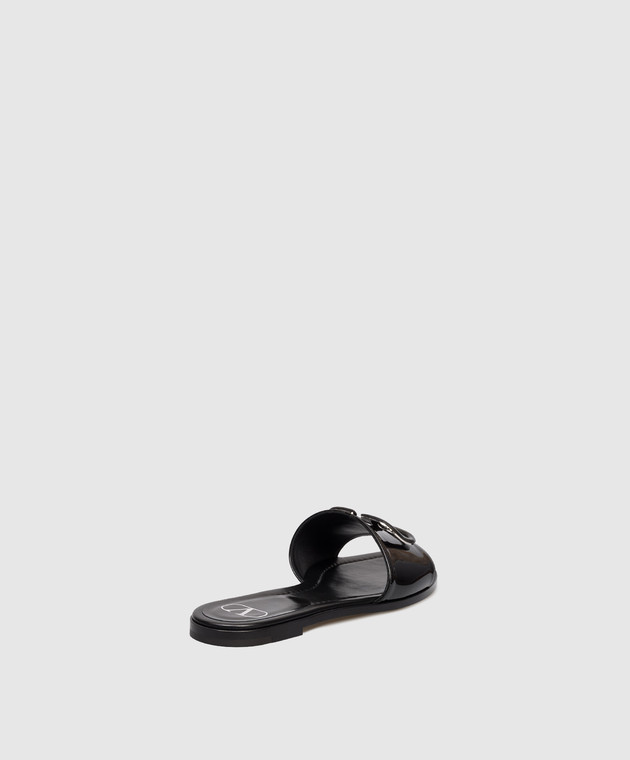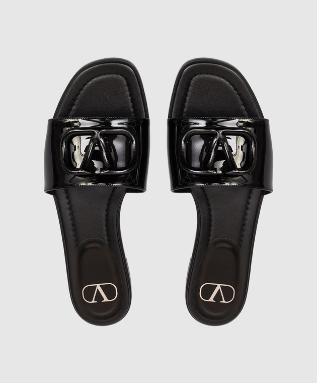 Чорні шкіряні лаковані шльопанці з емблемою
